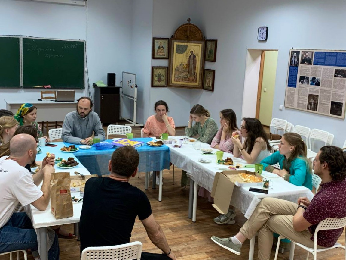 Встреча проходила в дружественной обстановке за чаепитием. Вначале мероприятия иерей Илья Макаров поприветствовал молодых людей и рассказал детали проекта: