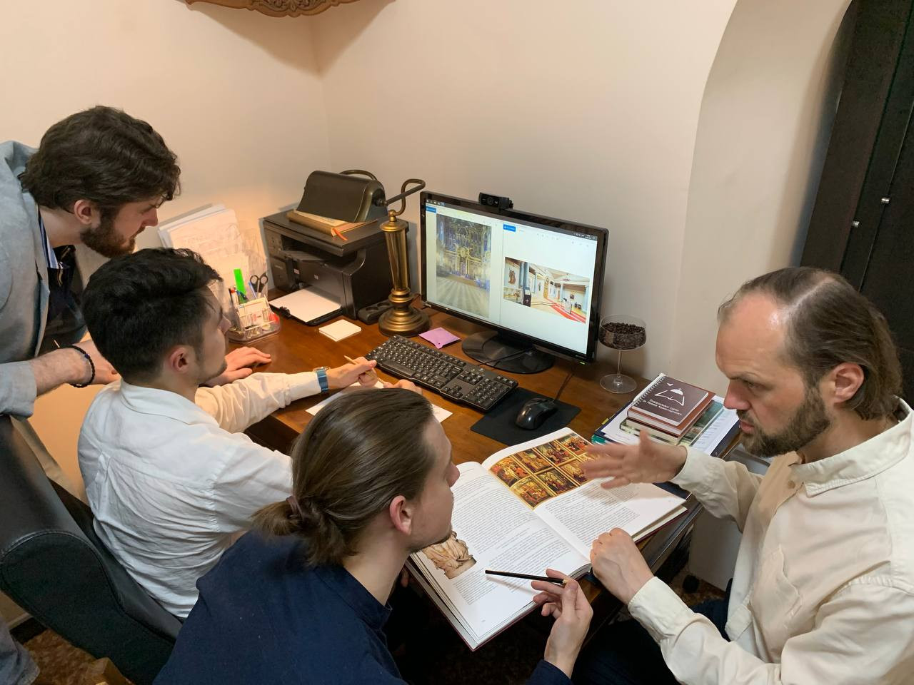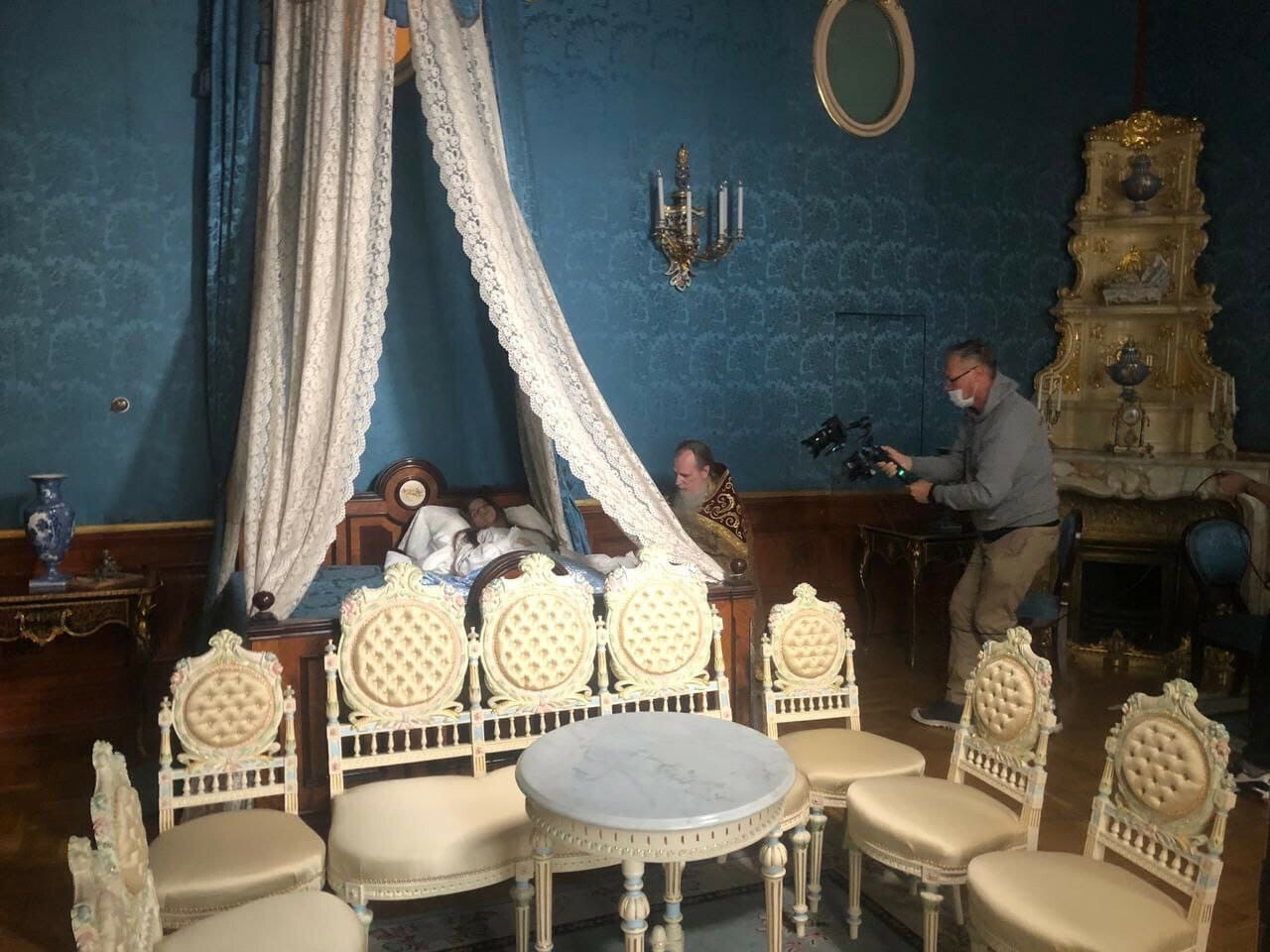 Ведущих цикла «Путешествие к сердцу дворцов» актёра, режиссёра, сценариста Игоря Сергеевича Копылова с дочерью Глафирой радушно встретили сотрудники музея Наталия Владимировна Зайцева и Валентина Владленовна Набок, которые также приняли участие в съёмках.